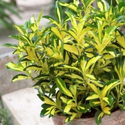 Саженец бересклета Экстаз (Ekstaz) представляет собой кустарник, который при надлежащем уходе может достигать высоты до 1,5 метра. Его побеги окрашены в яркий желтый цвет, а крупные, ланцетные листья имеют насыщенный темно-зеленый оттенок с характерным желтоватым узором.