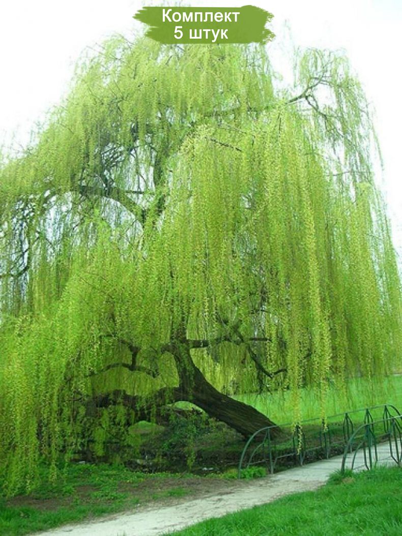 Саженцы плакучей ивы Зеленая - 5 шт. Выгодное предложение! Набор из 5 саженцев по цене 4