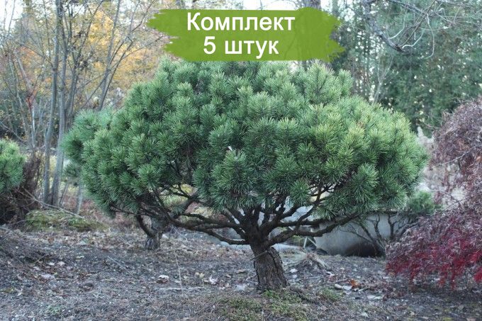 Комплект из пяти саженцев Горной сосны размером от 100 до 150 см предлагается по привлекательной цене, где пятый саженец идет бонусом. Горная сосна пользуется популярностью среди садоводов и ландшафтных архитекторов благодаря своим компактным размерам, что делает ее идеальным выбором для создания живописных композиций в саду. Это растение сохраняет свою зеленую окраску круглый год и радует приятным ароматом.