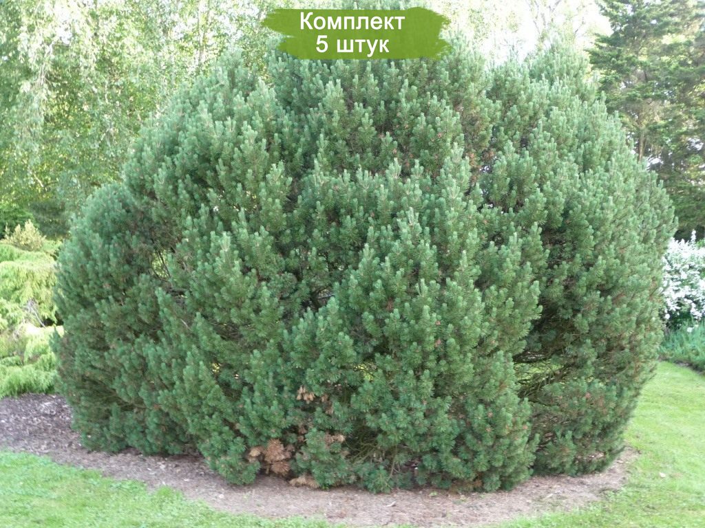 Комплект из пяти саженцев Горной сосны размером 40-60 см предлагается по привлекательной цене, где пятый саженец идет в подарок. Горная сосна пользуется большой популярностью среди садоводов и ландшафтных архитекторов благодаря своим компактным размерам и способности прекрасно вписываться в любые цветниковые композиции. Это растение сохраняет свою зеленую окраску круглый год и радует приятным ароматом.