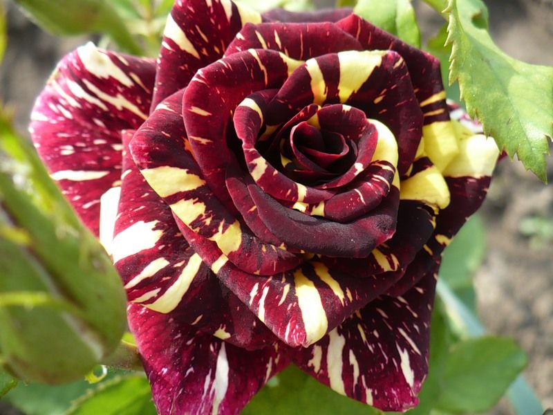 При первом взгляде на этот сорт розы возникает вопрос: "Неужели это роза?". Уникальная окраска поражает воображение. Сорт напоминает Hocus Pocus, но отличается более выраженными полосами. Цветки небольшие, красные с желтыми полосами. Высота растения составляет 50-60 см. Это срезочный сорт, который можно выращивать в открытом грунте.